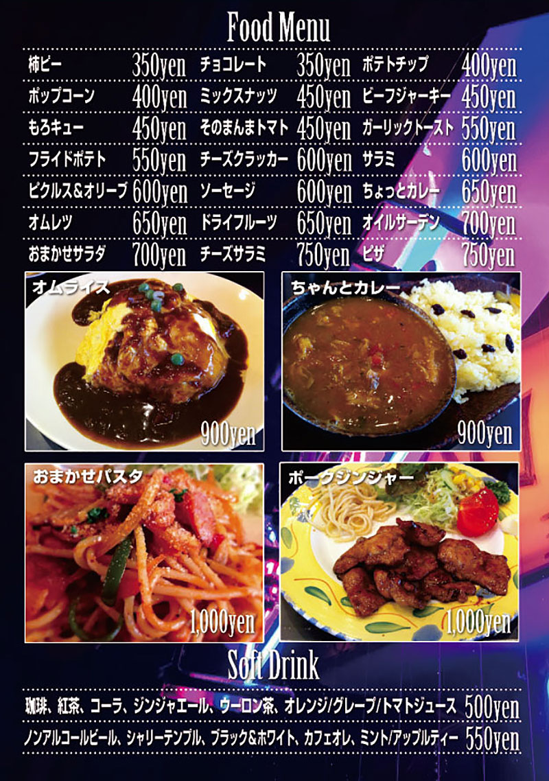 ドリンク&フードメニュー